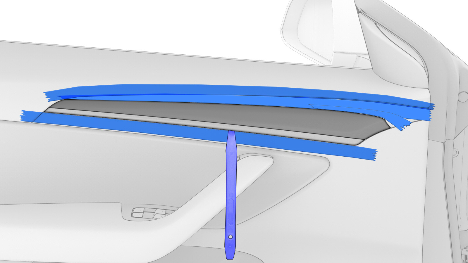 - Unhook the door decor from the LH door trim panel and then remove the decor from the panel.