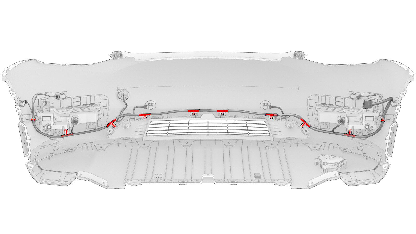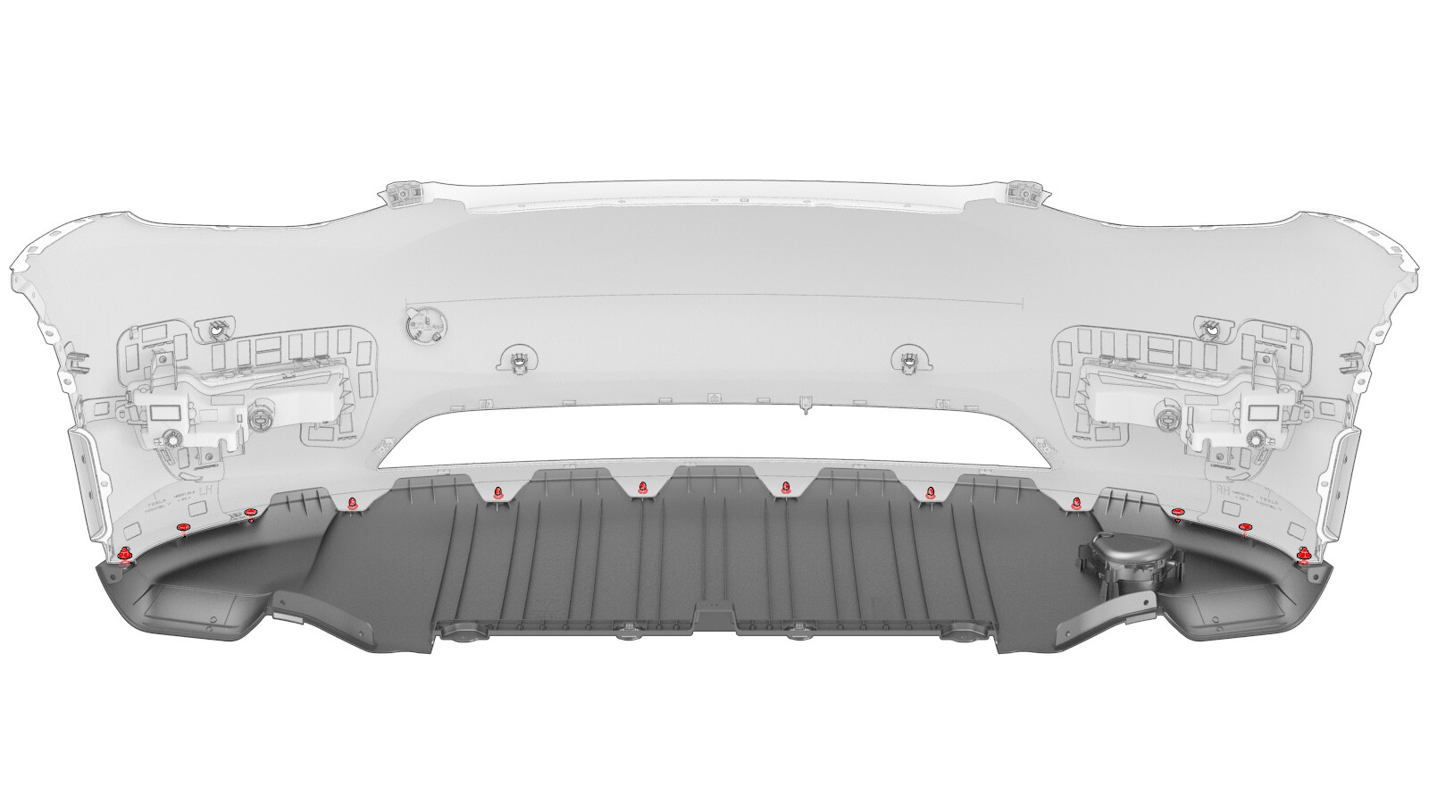 - Install the clips (x9) that attach the front fascia grille to the front fascia.
