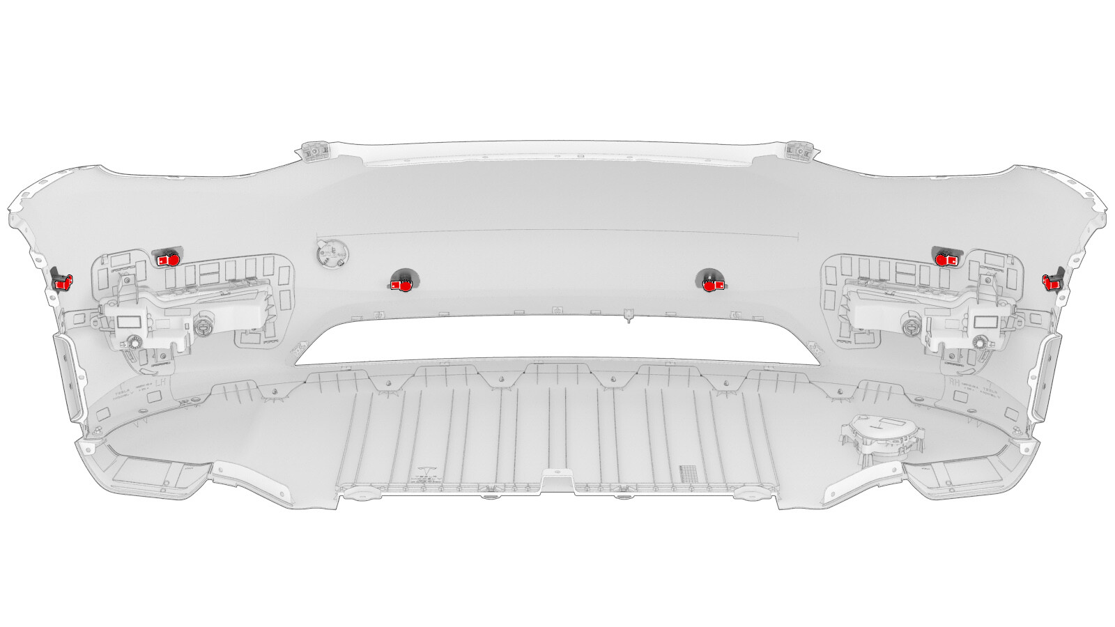 - On non-HW4 vehicles, release the clips that attach the parking sensors to the front fascia, and then remove the sensors (x6) from the fascia.