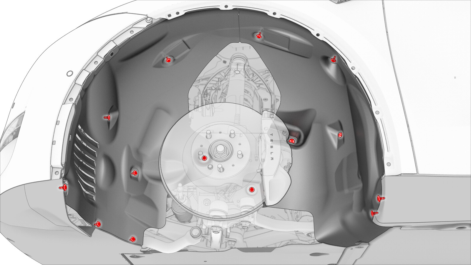 | Bolt that attaches the LH front wheel liner to the HV battery |