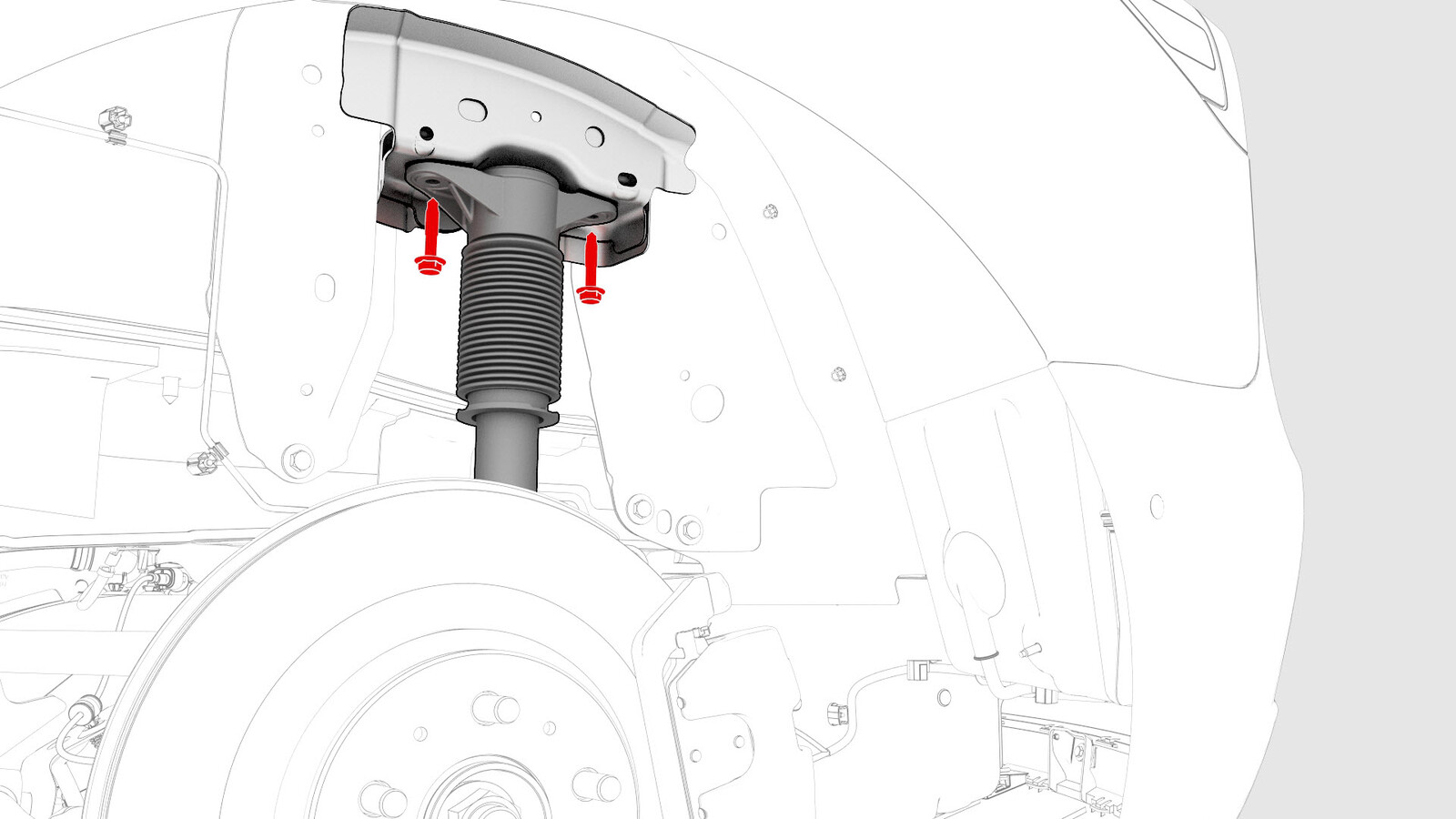 Remove the bolts that attach the LH rear damper to the body at the top mount.