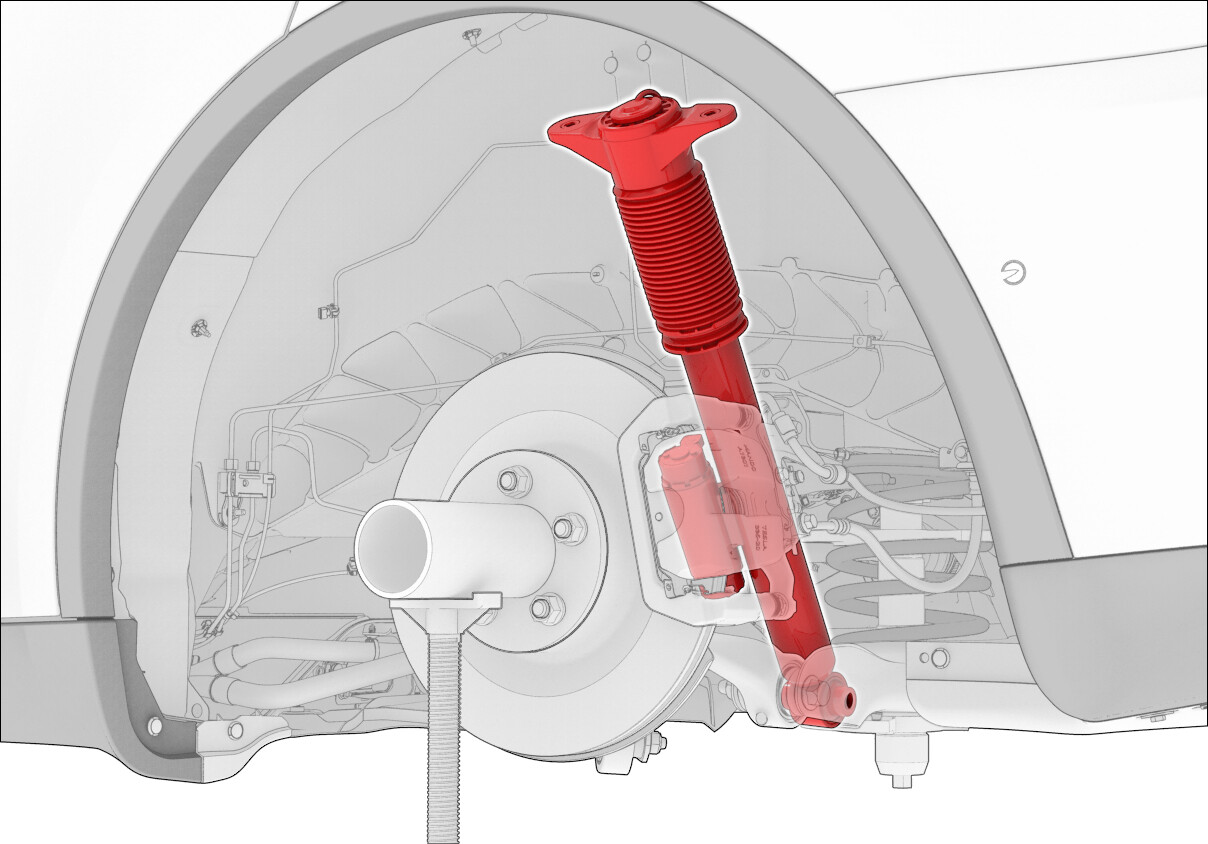 Install the bolts that attach the LH rear damper to the body at the top mount.