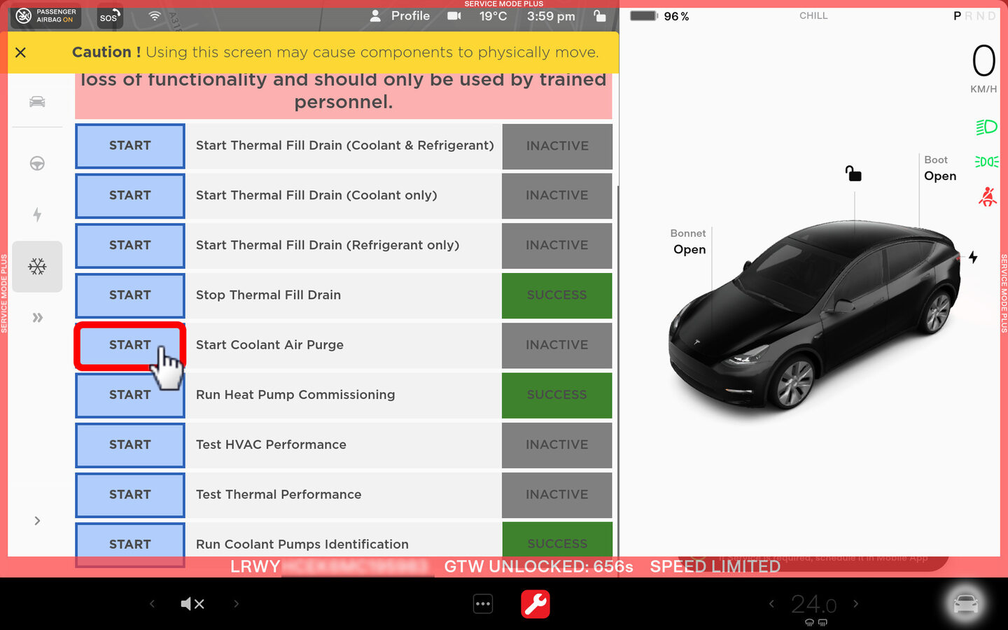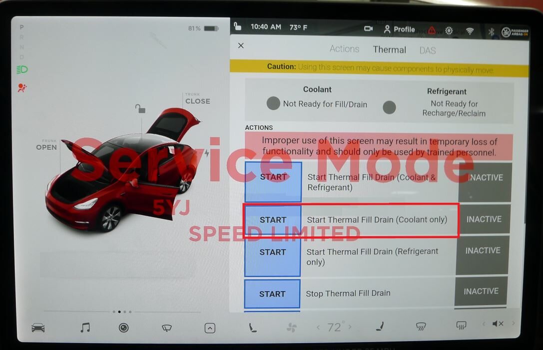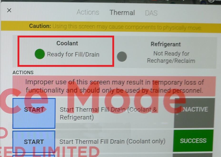 NoteTouch the X at the top left of window to close once completed.NoteVerify the indicator displays green and the vehicle is ready for the coolant fill/drain.NoteThermal "Fill Drain" routine has a 5 hour time limit. After 5 hours, the routine must be performed again.