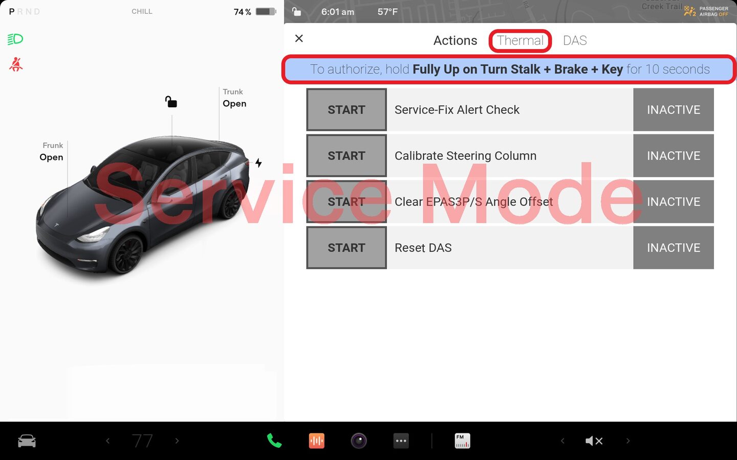 NoteAuthorize routines by holding the turn signal stalk full up (right hand turn) while applying brake with the key in the vehicle.