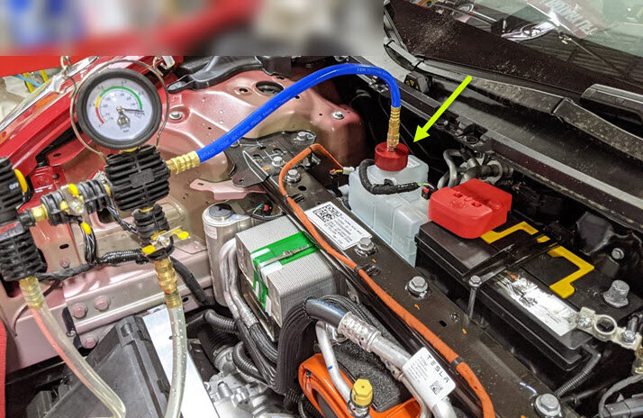 - Disconnect the enclosure leak tester from the coolant reservoir pressure test adapter.