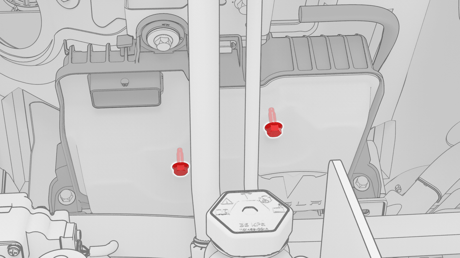 | Bolts (x2) that attach the front body controller module shield assembly to the vehicle |