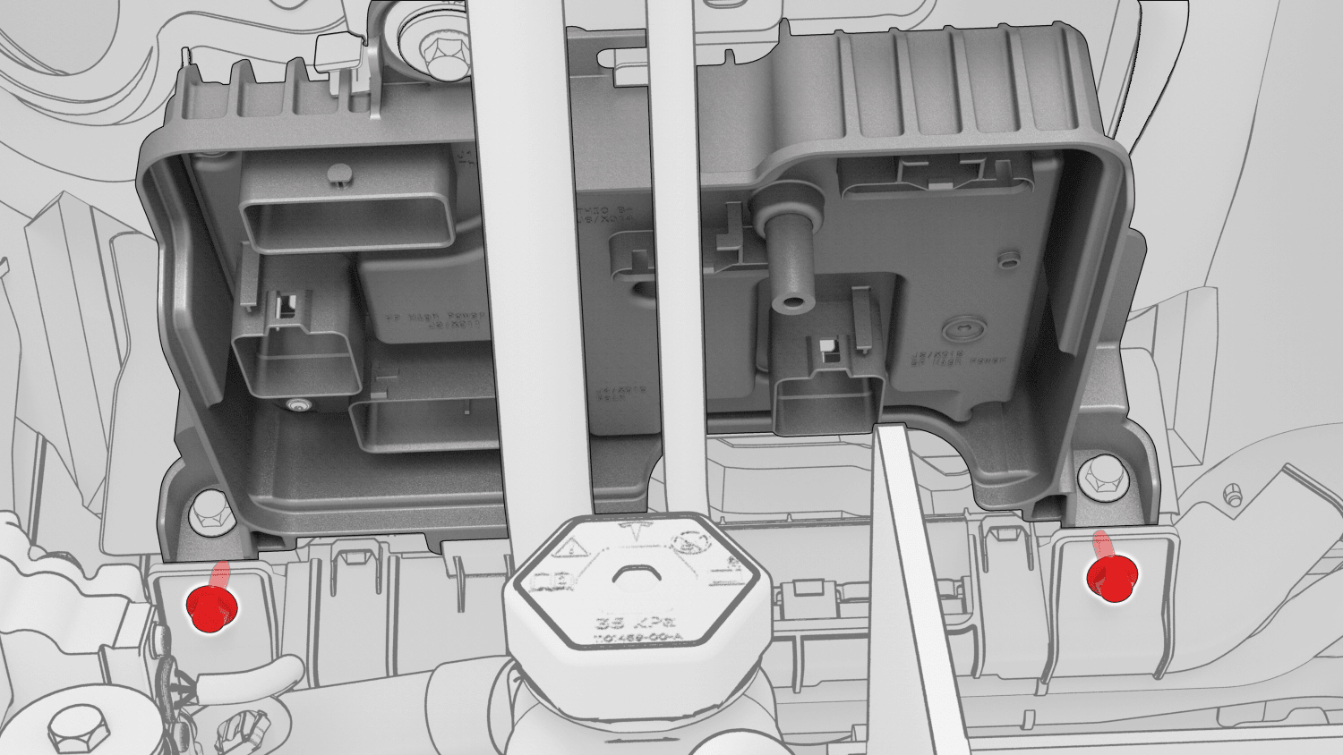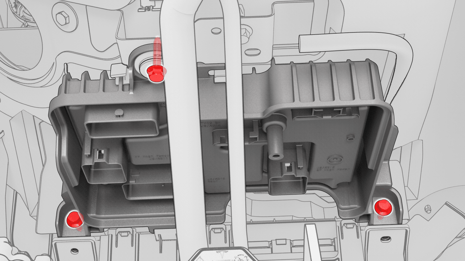- Remove the 12V auxiliary battery. See 12V/LV Battery (Remove and Replace).