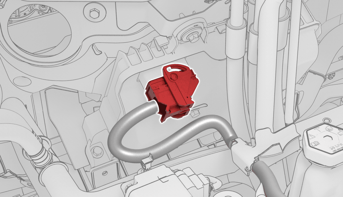 - Pivot the harness guide slightly forward and up to release the temp set clip from the front body controller module.