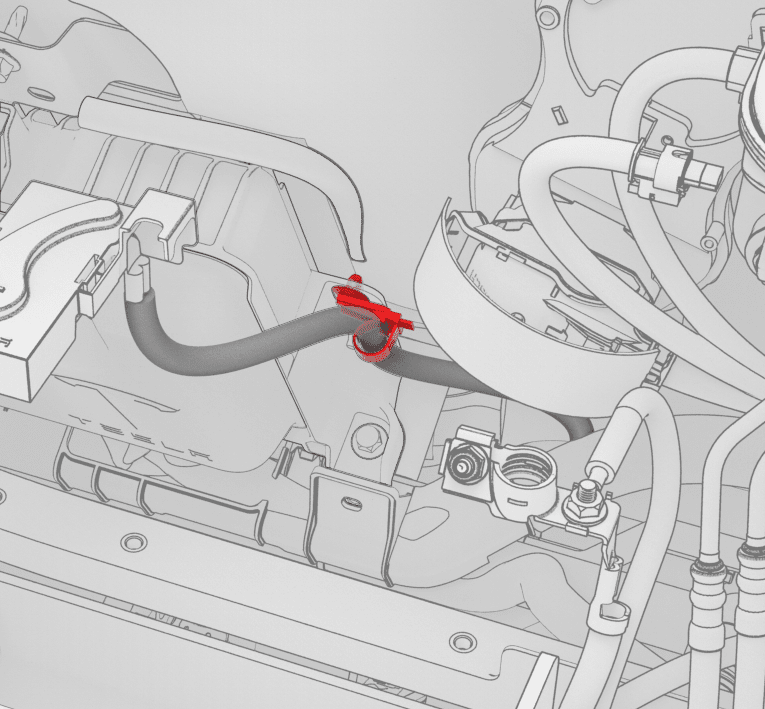 - Release the clip that attaches the 12V positive cable to the front body controller module.