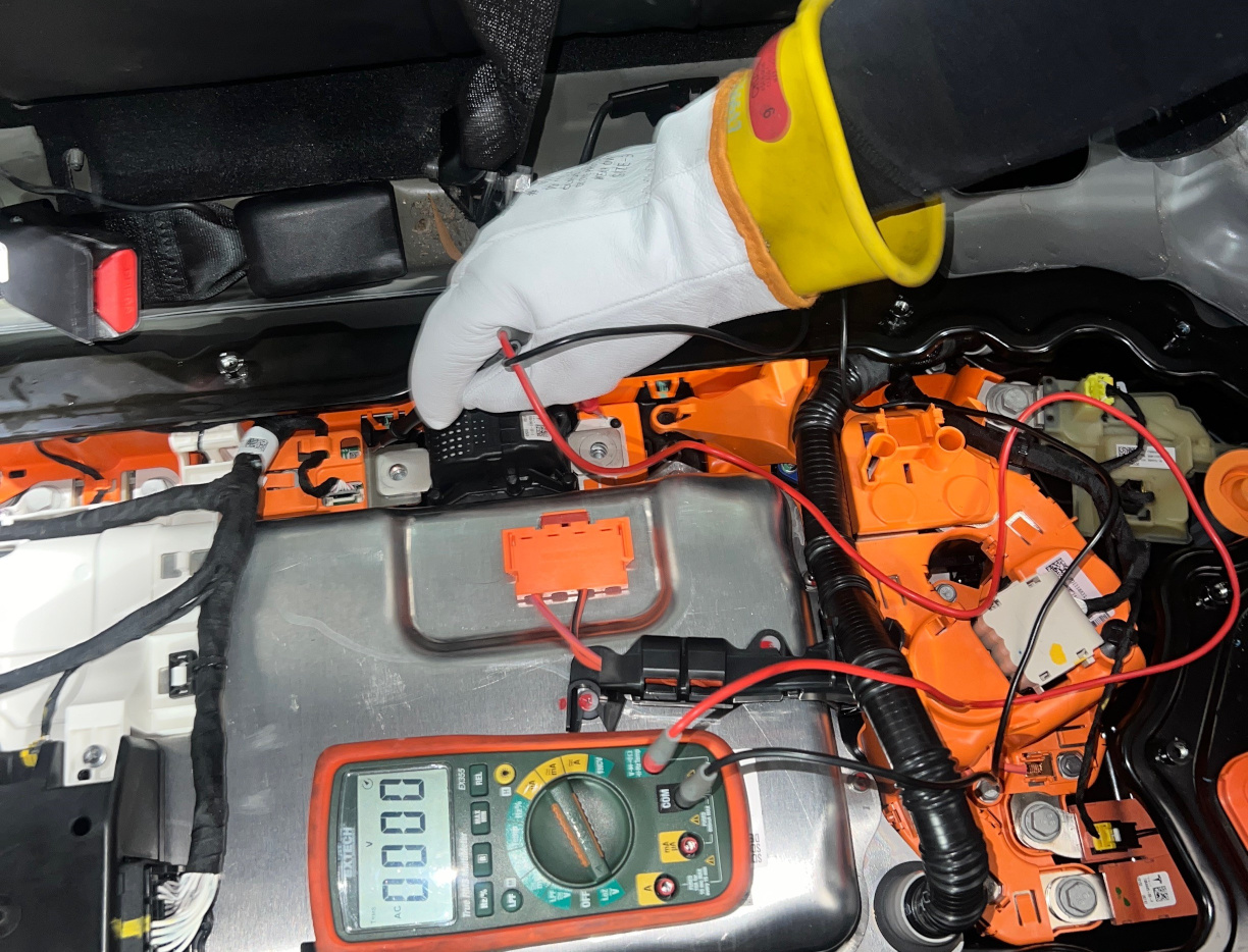 Use the Hioki resistance meter to measure the resistance at the HV joint between the newly-installed pyrotechnic battery disconnect and the shunt.