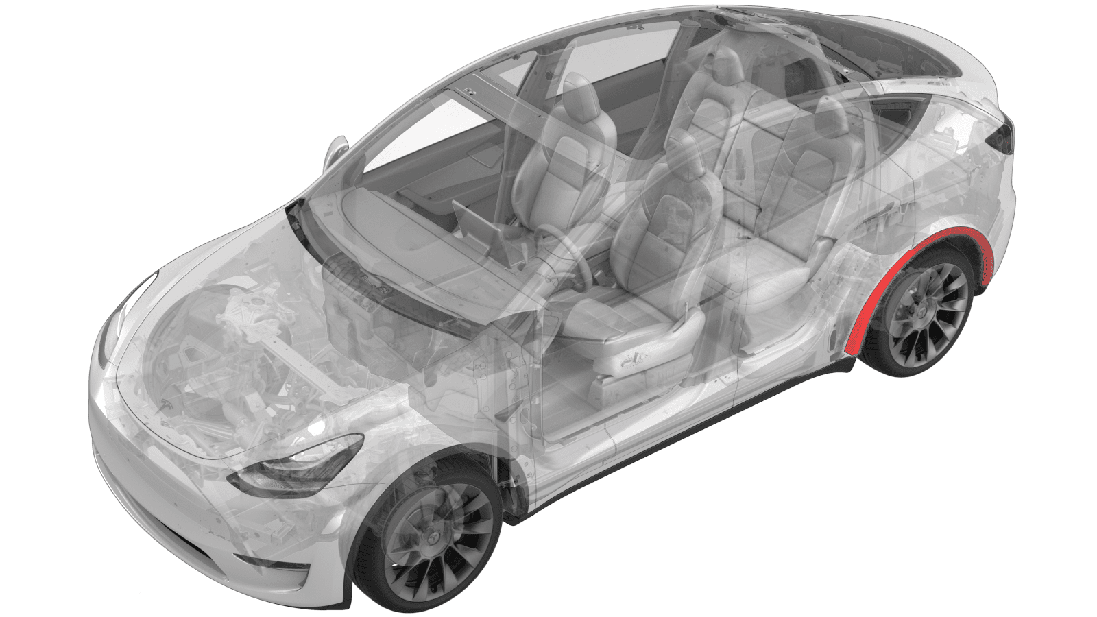 1220 - Exterior Trim Related links Applique - A-Pillar - Mirror - Door - LH (Remove and Replace) Correction code 12201102 0.36 NOTE: Unless otherwise explicitly stated in the procedure, the above correction code and FRT reflect all of the work required to perform this procedure, including the linked procedures. Do not stack correction codes unless explicitly told to do so.NOTE: See Flat Rate Times to learn more about FRTs and how they are created. To provide feedback on FRT values, email LaborTimeFeedback@tesla.com. NOTE: See Personal Protection to make sure wearing proper PPE when performing the below procedure. Applique - B-Pillar - LH (Remove and Replace) Correction code 12200102 0.18 NOTE: Unless otherwise explicitly stated in the procedure, the above correction code and FRT reflect all of the work required to perform this procedure, including the linked procedures. Do not stack correction codes unless explicitly told to do so.NOTE: See Flat Rate Times to learn more about FRTs and how they are created. To provide feedback on FRT values, email LaborTimeFeedback@tesla.com. NOTE: See Personal Protection to make sure wearing proper PPE when performing the below procedure. Brightwork - Upper - LH (Remove and Replace) Correction code 12200302 0.42 NOTE: Unless otherwise explicitly stated in the procedure, the above correction code and FRT reflect all of the work required to perform this procedure, including the linked procedures. Do not stack correction codes unless explicitly told to do so.NOTE: See Flat Rate Times to learn more about FRTs and how they are created. To provide feedback on FRT values, email LaborTimeFeedback@tesla.com. NOTE: See Personal Protection to make sure wearing proper PPE when performing the below procedure. Carrier - Rocker Panel - LH (Remove and Replace) Correction code 12202402 0.24 NOTE: Unless otherwise explicitly stated in the procedure, the above correction code and FRT reflect all of the work required to perform this procedure, including the linked procedures. Do not stack correction codes unless explicitly told to do so.NOTE: See Flat Rate Times to learn more about FRTs and how they are created. To provide feedback on FRT values, email LaborTimeFeedback@tesla.com. NOTE: See Personal Protection to make sure wearing proper PPE when performing the below procedure. Carrier - Rocker Panel - LH (Structural Pack) (Remove and Replace) Correction code 12202412 0.18 NOTE: Unless otherwise explicitly stated in the procedure, the above correction code and FRT reflect all of the work required to perform this procedure, including the linked procedures. Do not stack correction codes unless explicitly told to do so.NOTE: See Flat Rate Times to learn more about FRTs and how they are created. To provide feedback on FRT values, email LaborTimeFeedback@tesla.com. NOTE: See Personal Protection to make sure wearing proper PPE when performing the below procedure. Cover - Applique - B-Pillar - LH (Remove and Replace) Correction code 12200112 NOTE: Unless otherwise explicitly stated in the procedure, the above correction code and FRT reflect all of the work required to perform this procedure, including the linked procedures. Do not stack correction codes unless explicitly told to do so.NOTE: See Flat Rate Times to learn more about FRTs and how they are created. To provide feedback on FRT values, email LaborTimeFeedback@tesla.com. NOTE: See Personal Protection to make sure wearing proper PPE when performing the below procedure. Cover - Rocker Panel - Lower - LH (Remove and Replace) Correction code 12202602 0.06 NOTE: Unless otherwise explicitly stated in the procedure, the above correction code and FRT reflect all of the work required to perform this procedure, including the linked procedures. Do not stack correction codes unless explicitly told to do so.NOTE: See Flat Rate Times to learn more about FRTs and how they are created. To provide feedback on FRT values, email LaborTimeFeedback@tesla.com. NOTE: See Personal Protection to make sure wearing proper PPE when performing the below procedure. Garnish - Fender - Rear - LH (Remove and Replace) Correction code 12201402 0.06 NOTE: Unless otherwise explicitly stated in the procedure, the above correction code and FRT reflect all of the work required to perform this procedure, including the linked procedures. Do not stack correction codes unless explicitly told to do so.NOTE: See Flat Rate Times to learn more about FRTs and how they are created. To provide feedback on FRT values, email LaborTimeFeedback@tesla.com. NOTE: See Personal Protection to make sure wearing proper PPE when performing the below procedure. Garnish - Fender - Front - LH (Remove and Replace) Correction code 12201202 0.06 NOTE: Unless otherwise explicitly stated in the procedure, the above correction code and FRT reflect all of the work required to perform this procedure, including the linked procedures. Do not stack correction codes unless explicitly told to do so.NOTE: See Flat Rate Times to learn more about FRTs and how they are created. To provide feedback on FRT values, email LaborTimeFeedback@tesla.com. NOTE: See Personal Protection to make sure wearing proper PPE when performing the below procedure. Mud Flaps (Retrofit) Correction code 12207006 0.06 NOTE: Unless otherwise explicitly stated in the procedure, the above correction code and FRT reflect all of the work required to perform this procedure, including the linked procedures. Do not stack correction codes unless explicitly told to do so.NOTE: See Flat Rate Times to learn more about FRTs and how they are created. To provide feedback on FRT values, email LaborTimeFeedback@tesla.com. NOTE: See Personal Protection to make sure wearing proper PPE when performing the below procedure. Mud Flap - LH (Remove and Replace) Correction code 12207102 0.12 NOTE: Unless otherwise explicitly stated in the procedure, the above correction code and FRT reflect all of the work required to perform this procedure, including th