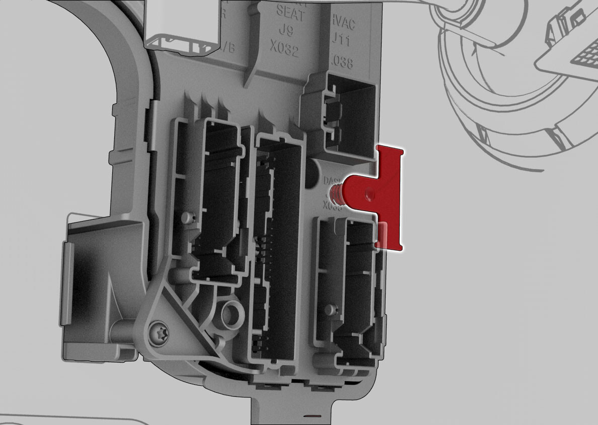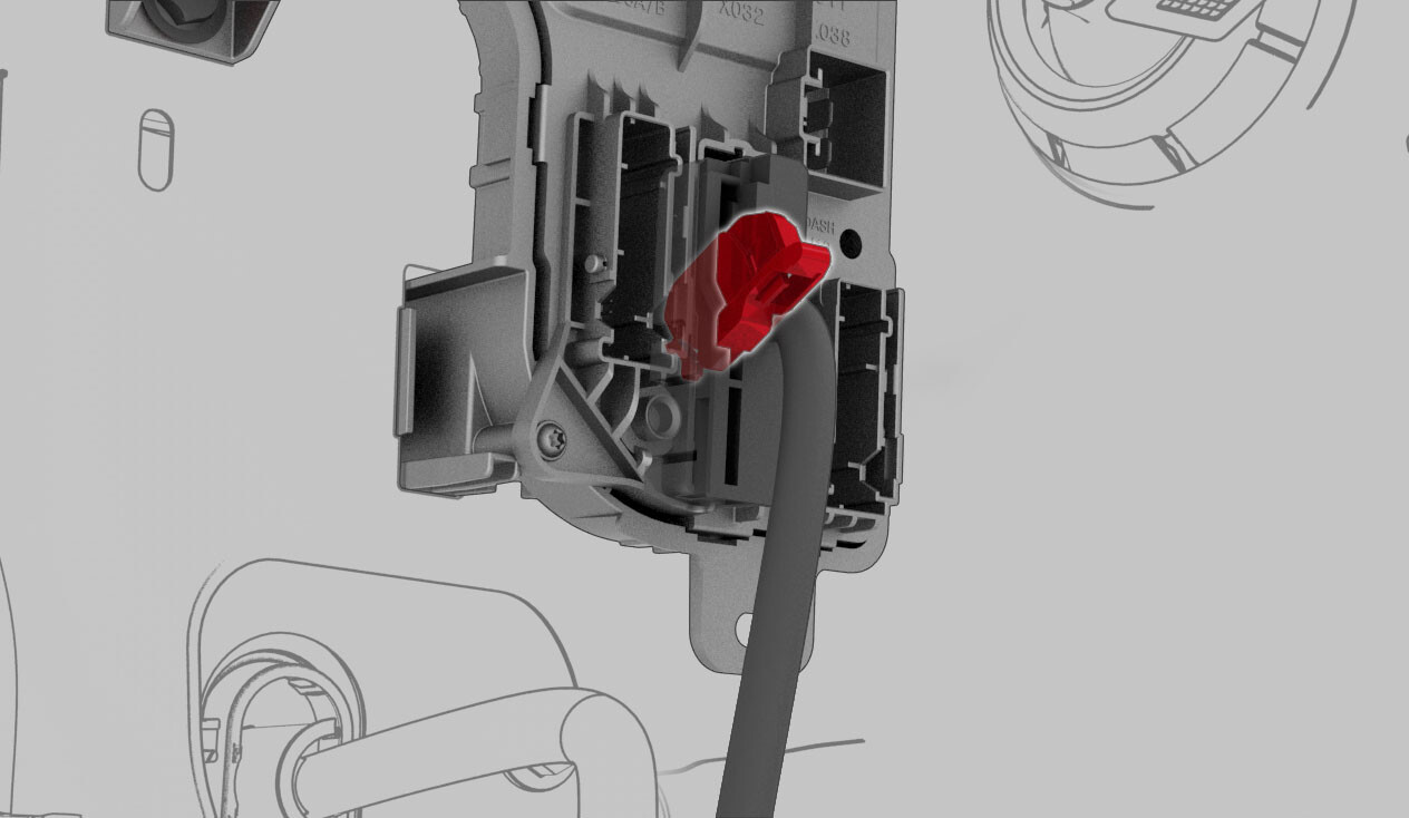 NoteVehicle connection is integrated into LH footwell cover.