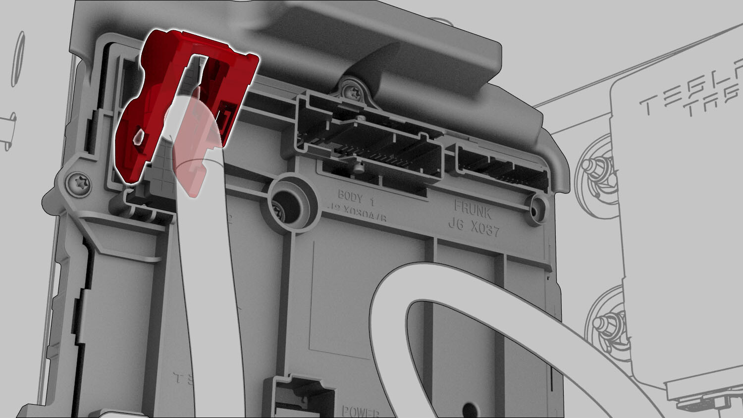 - Release the connector lock, and then disconnect the J1 power connector from the LH body controller module.