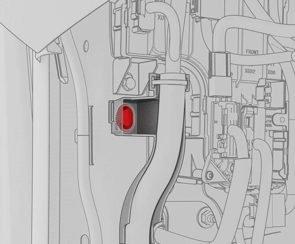 - Install the clips (x2) that attach the LH body harness to the body controller module area.