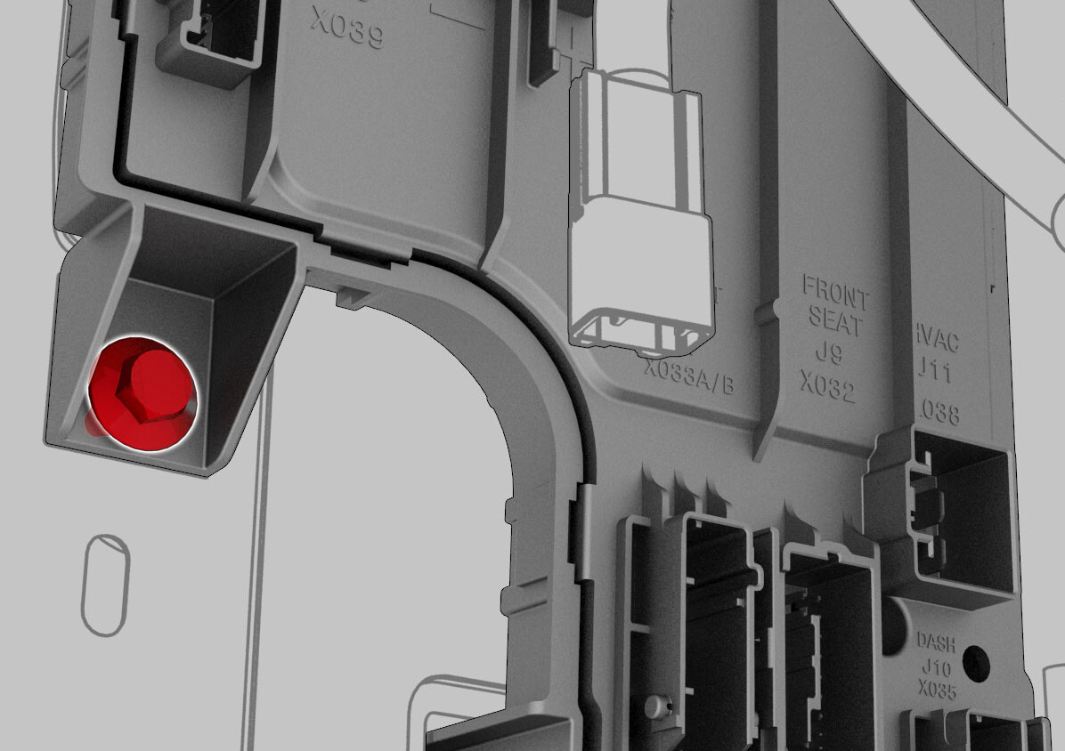 | Bolt that attaches the LH body controller module to the vehicle |