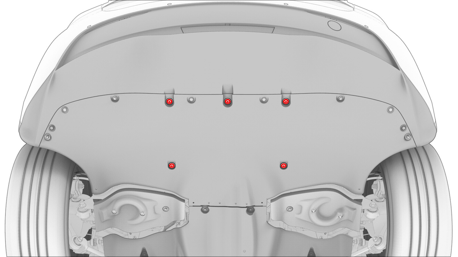 | Bolts that attach the rear diffuser to lower trunk assembly |