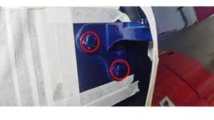 - Use the alignment tape to position the LH lower rear door hinge onto the body, and then hand tighten the bolts that attach the hinge to the body.