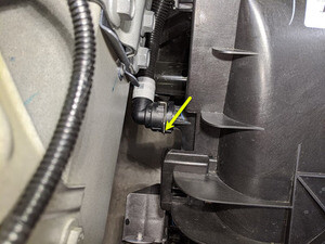 - Release the clip that attaches the radiator outlet hose to the RH side of the vehicle.