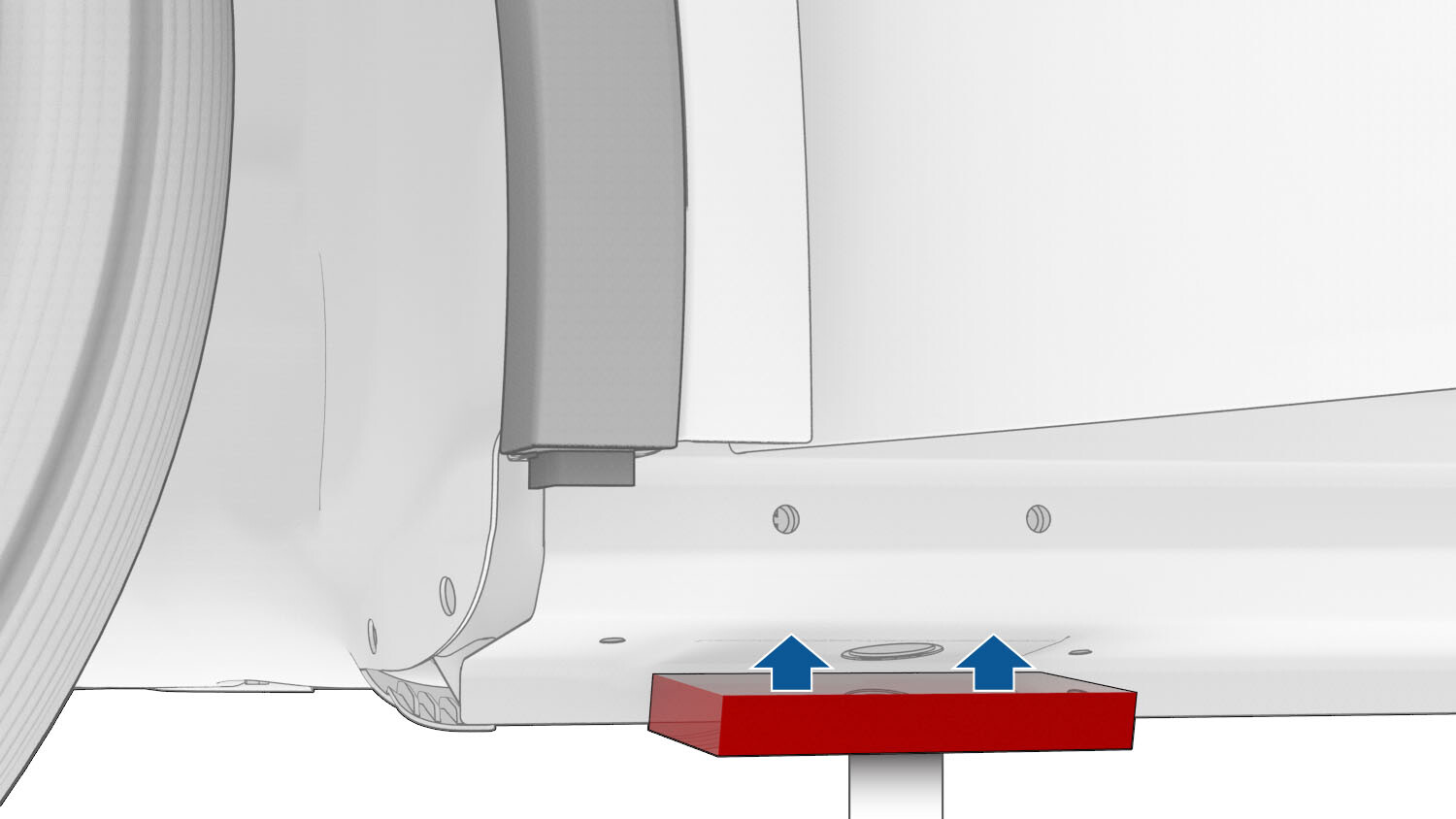 WarningUse Model Y lift pad adapters (1614078-00-A) only.CAUTIONVerify jack locations prior to lifting the vehicle. Only place on lifting points at the front and rear of the rocker panels.