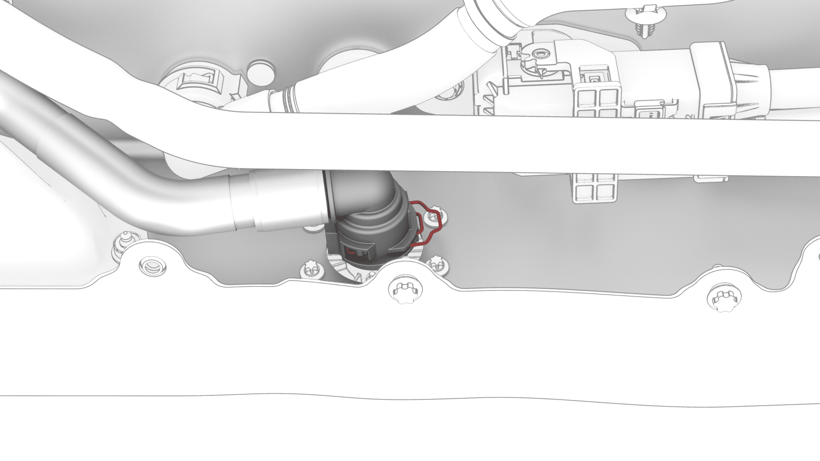 powertrain return hose at the RH side of the vehicle, immediately connect