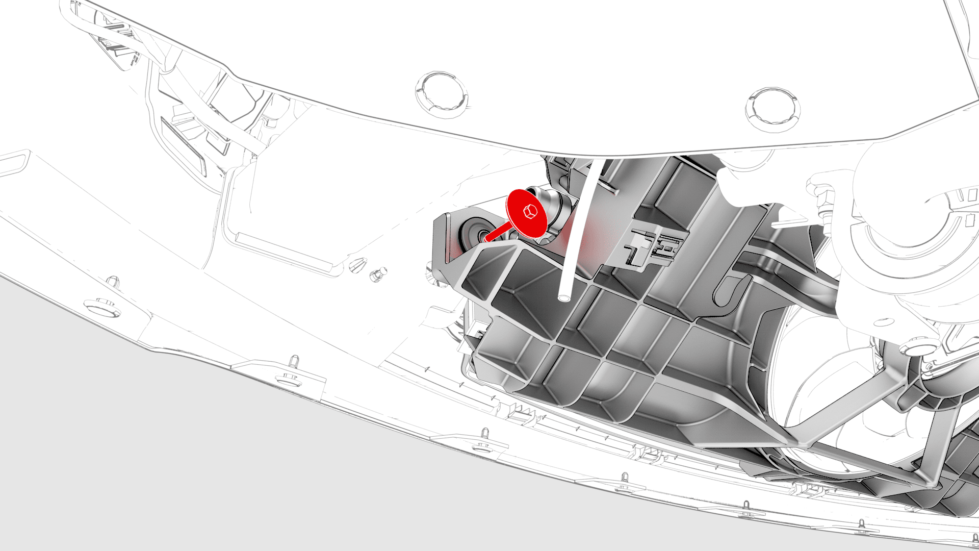 - Remove the front aero shield panel. See Panel - Aero Shield - Front (Non-Structural Pack) (Remove and Replace).