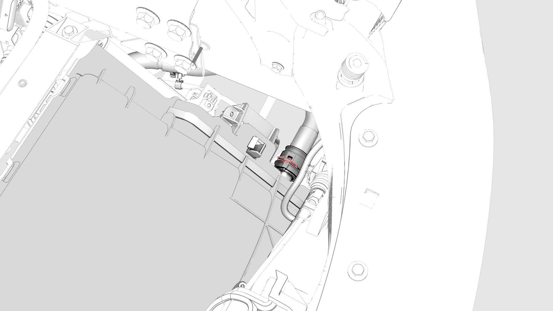 - Connect the ambient temperature sensor electrical connector, and then install the sensor cover onto the active griller shutter.