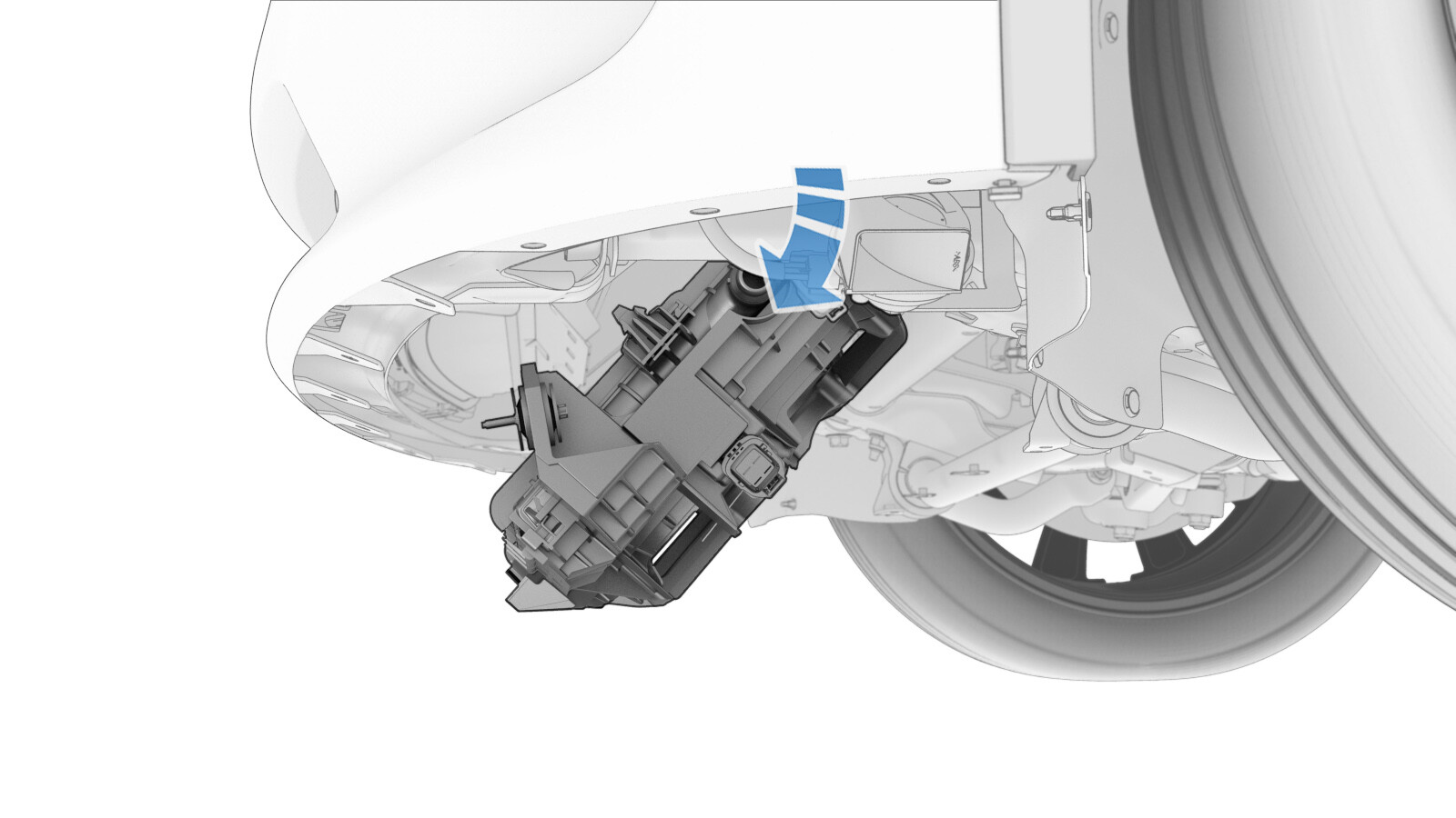 - Connect the active grille shutter electrical connector, and then engage the connector lock.
