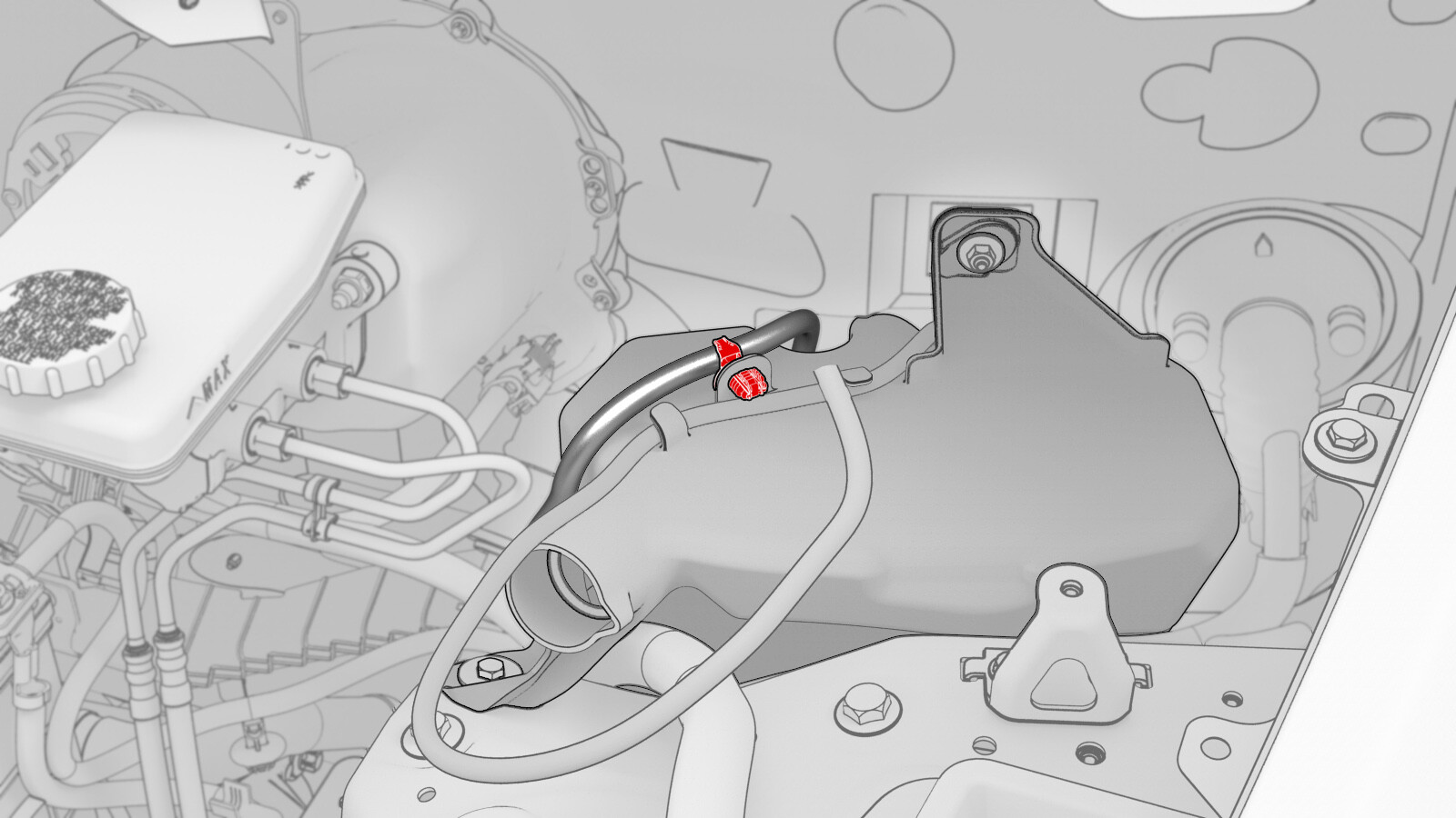 - Fasten the clip that attaches the electrical harness to the windshield washer reservoir.