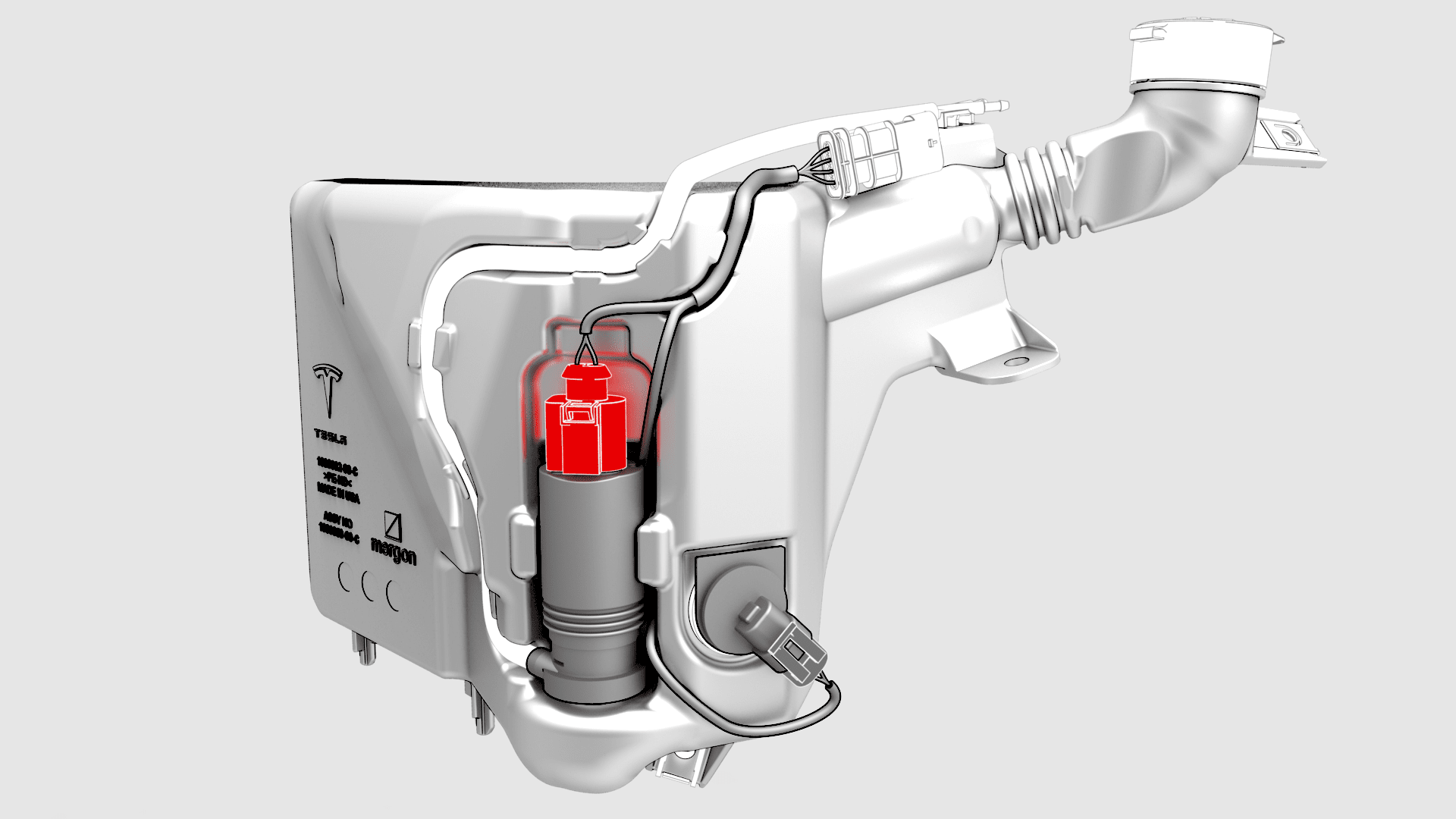 - Remove the reservoir filler neck from the new washer system assembly.