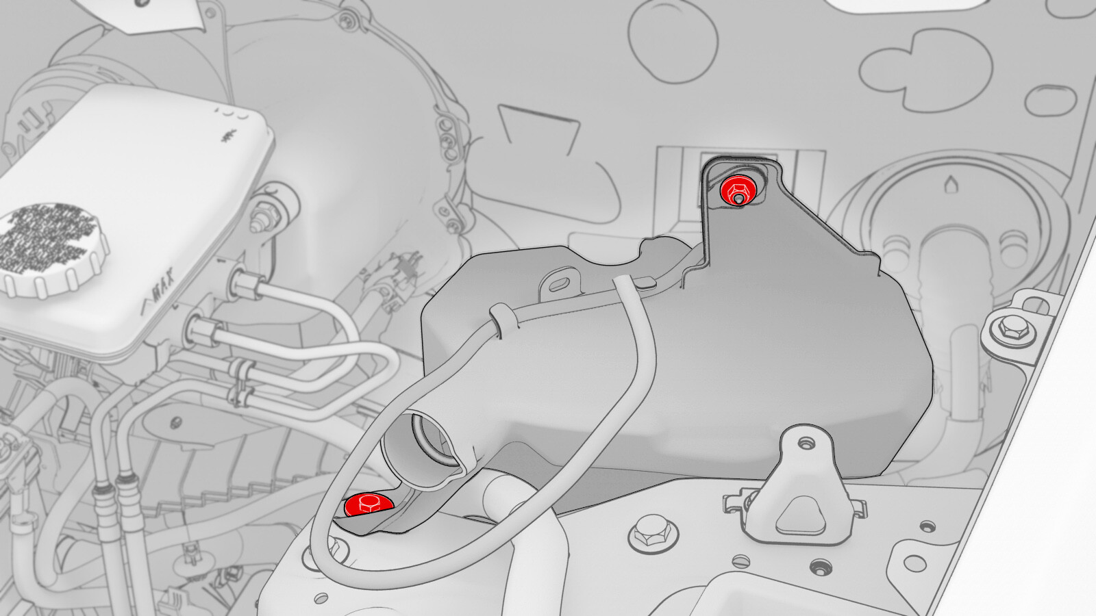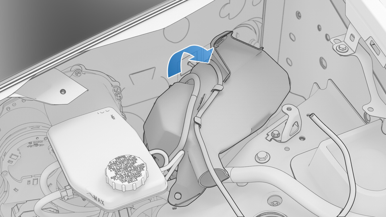 - Remove the windshield washer reservoir filler neck. See Filler Neck - Reservoir - Windshield Washer (LHD) (Remove and Replace).