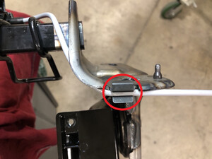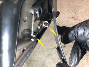 - Install the 3rd row LH recliner actuator cable into holding mount on the seat frame assembly.