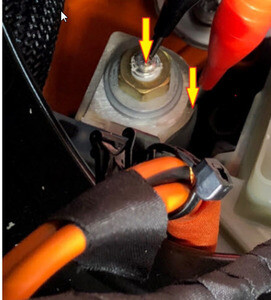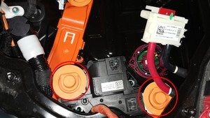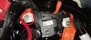 - Remove the HV joint insulators (x2) from the positive pack contactor.