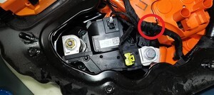 NoteNewer pack has this harness clip further away from contactor thus does not require removal for access.