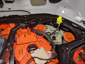 - Disconnect the ancillary bay harness clip from the positive pack contactor.