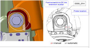 joint of the positive pack contactor to DC link busbar.