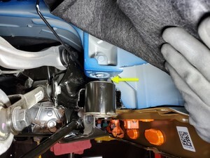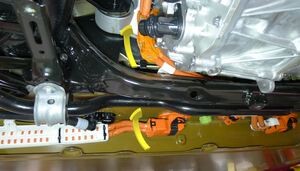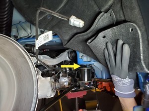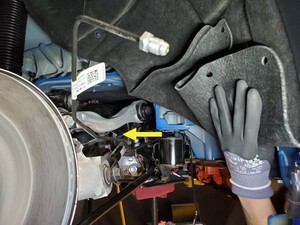 Note1x spring clip, 1x clip, Rotate between subframe and battery out of vehicle