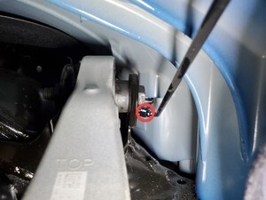Remove bolt securing frunk to washer fluid reservoir neck
