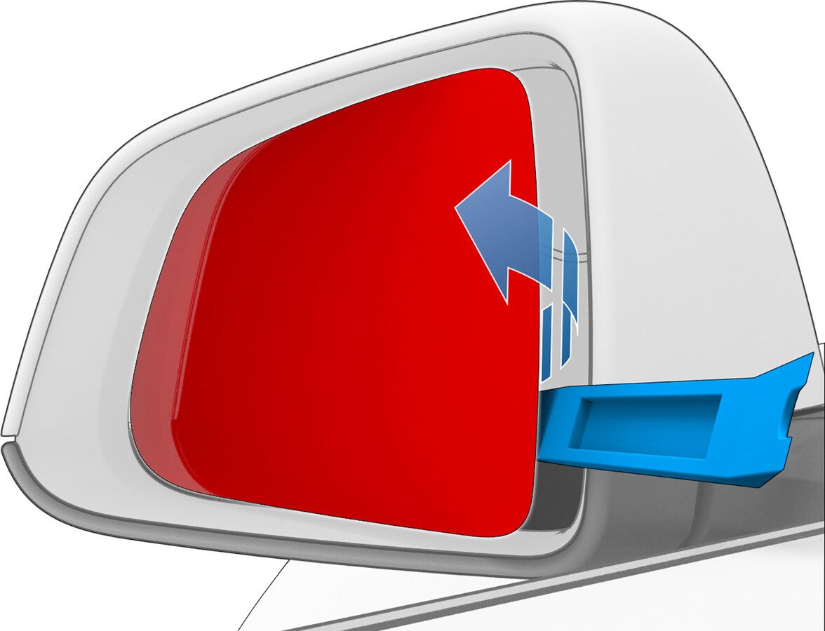 - Press the outside of the door mirror glass fully in so that it is angled away from the vehicle.