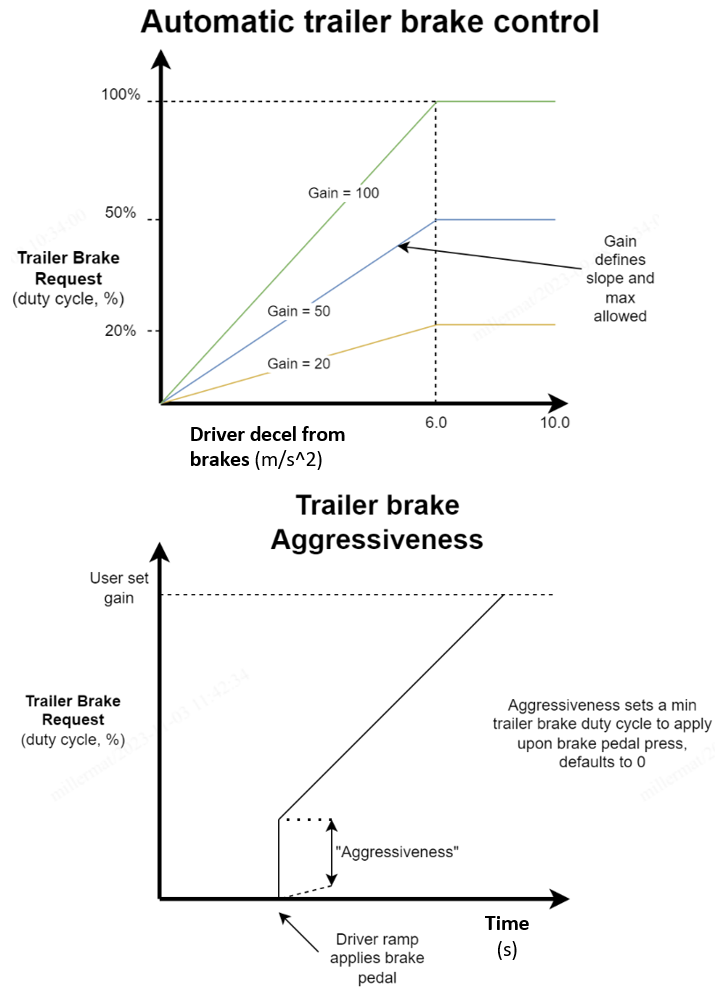 The driver can also tune the trailer brake aggressiveness. This allows the trailer brakes to ramp to the desired gain from a variable set point after the brake pedal is pressed.