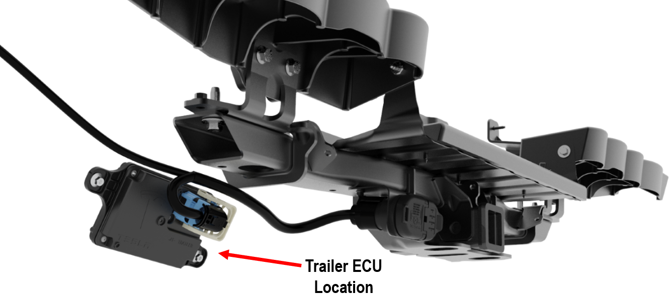 The trailer lights and brakes are controlled by the Trailer Controller. The Trailer Controller 48V device is powered by VCREAR (Vehicle Rear Controller) and communicates with VCREAR over CAN. The Trailer Controller is mounted onto the Diffuser bracket located at the aft part of the vehicle. The Diffuser Bracket is mounted onto the rear end module that secures the hitch to the rear casting.