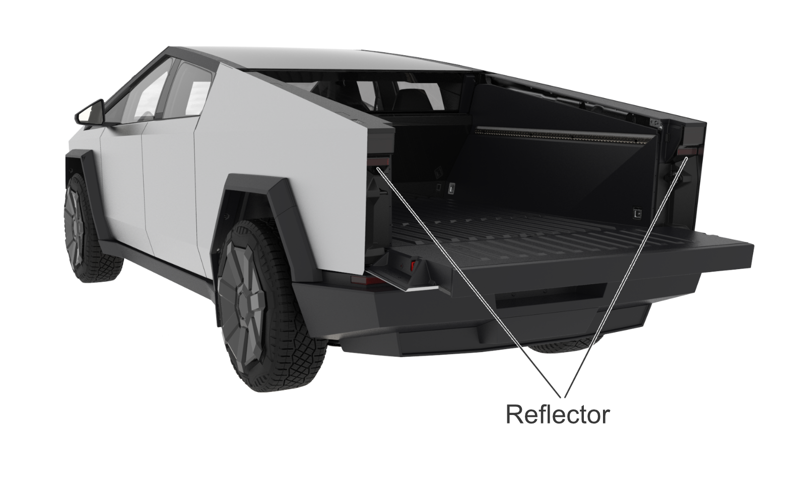 - Reflector behind the tailgate on each side. Visible when the tailgate is open