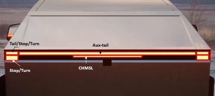 - Tailgate light (Aux light on top and Center High-Mounted Stop Lamp (CHMSL) in the lower middle section)