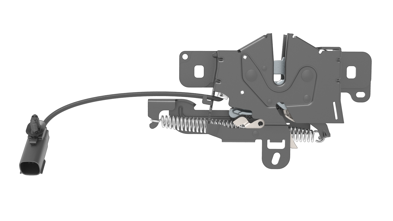 - Two AJAR switches, one Normally Open (NO) and one Normally Closed (NC), reporting whether the striker is engaged in the primary position (fully closed).
