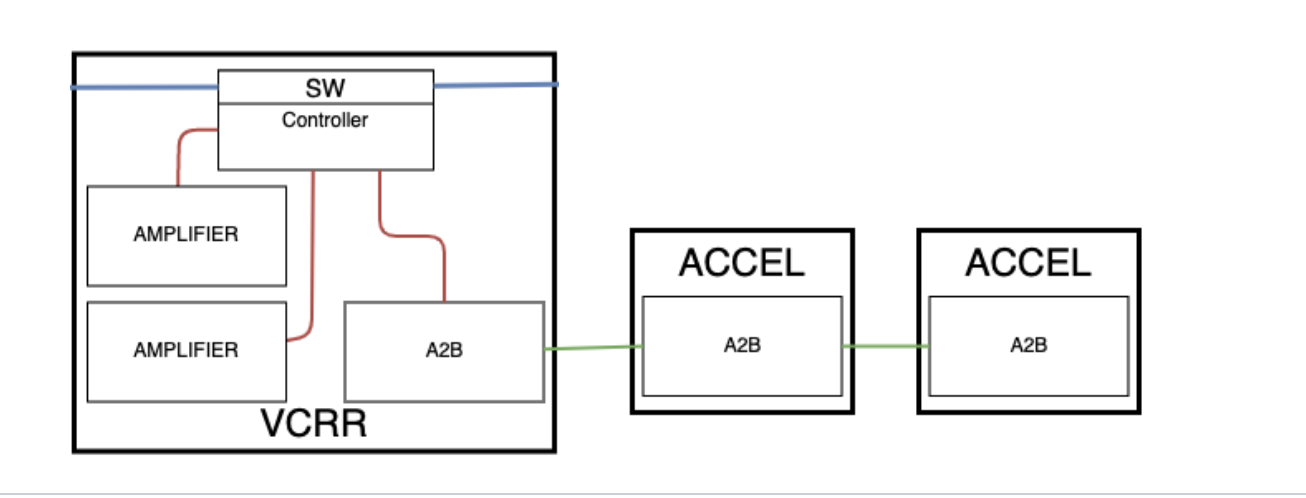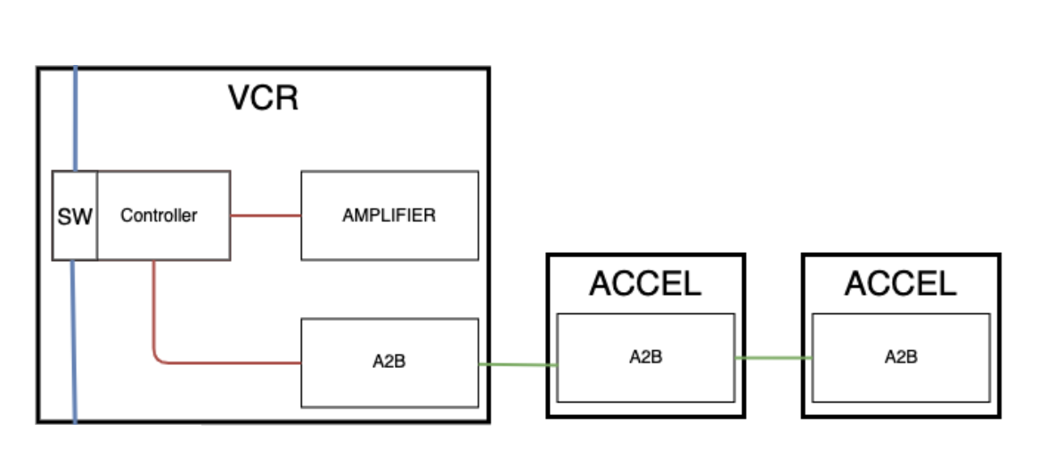 - The VCREAR is the host controller, and the accelerometer are the subordinate nodes.
