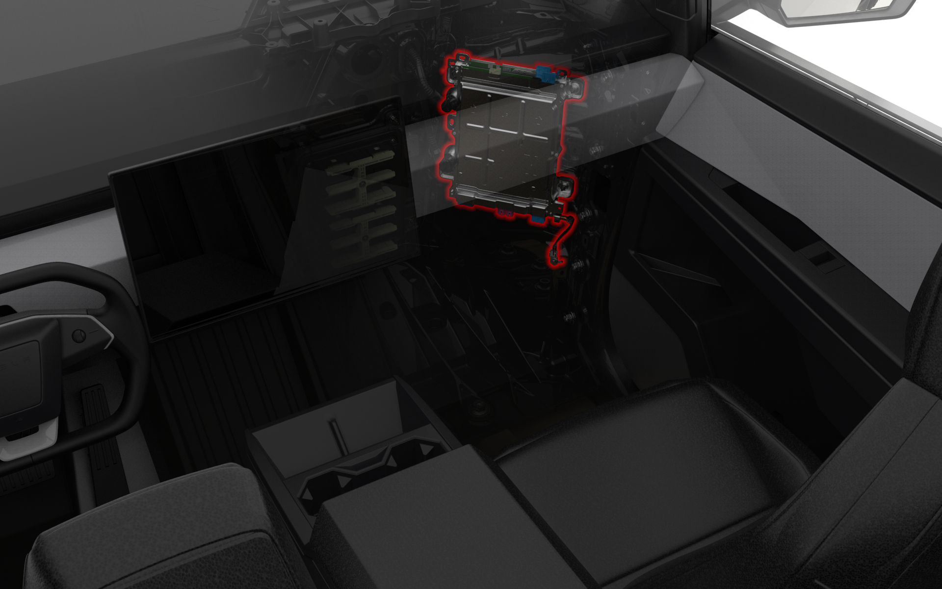 The Infotainment board is located in the Car Computer, which is mounted in a portrait orientation to the right front casting reinforcement in the cabin behind the Glove Box.