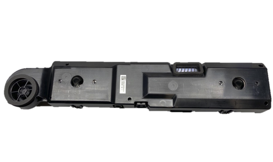 The TCU mainly consists of top and bottom enclosures, a fan, a cast aluminum heat sink, and a printed circuit board assembly (PCBA). The fan housing is integrated into the TCU enclosure. The antenna is grounded to body-in-white through the ground plate. The heat sink is also used for shielding. The TCU only has two connectors. One is a 2-pin connector for the Ethernet harness. The other is an 8-pin connector for A2B bus, power, and ground.