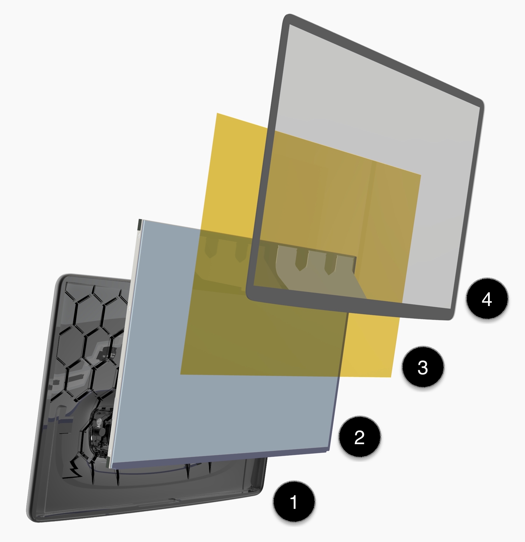 | 1. Housing 2. LCD panel 3. Liquid optically clear adhesive 4. Touch panel |