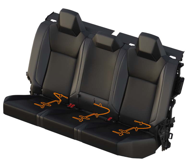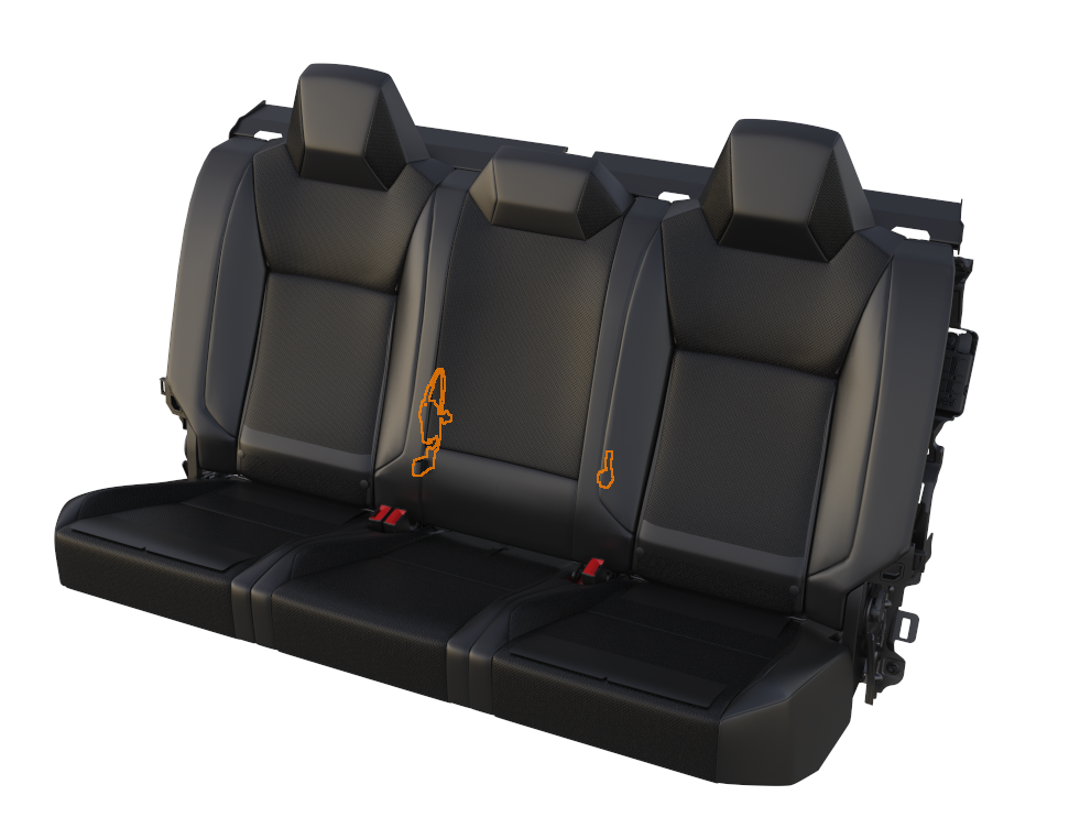 There are removable bolsters between each seating position and on the outer portion of the seats. Removing these allow easy access to components like the Charge Port Electronic Control Unit (ECU) located on the left-hand side of the vehicle.