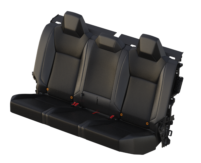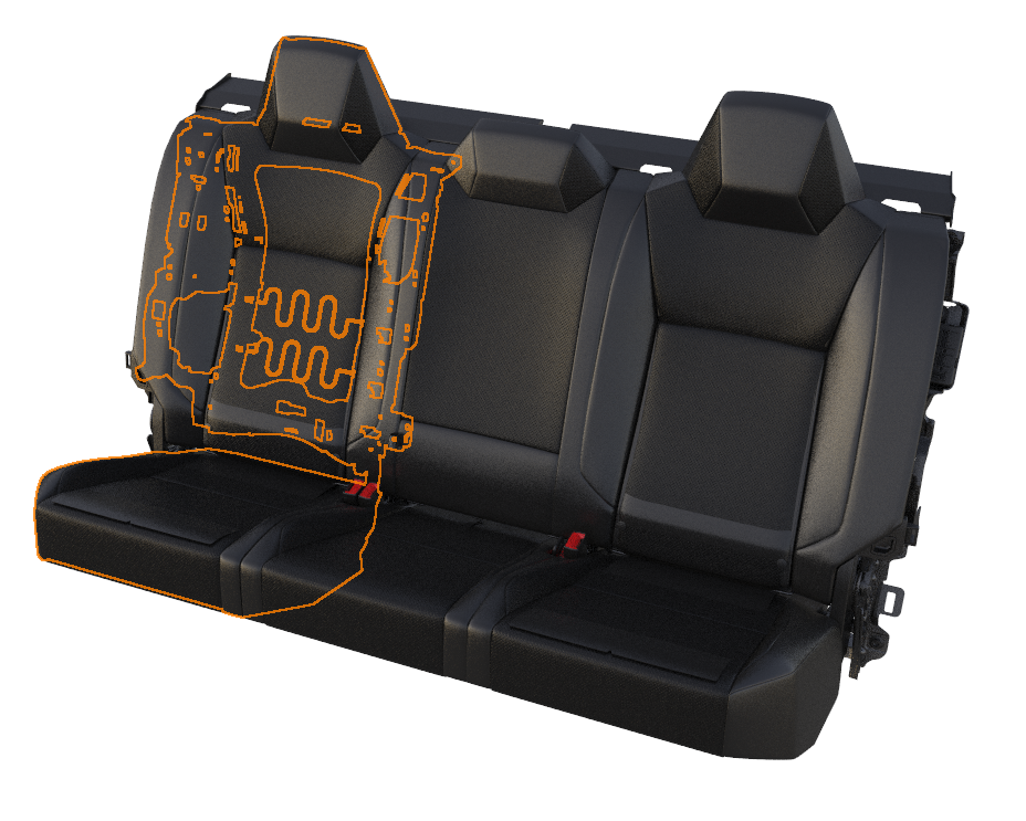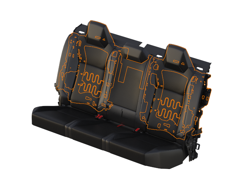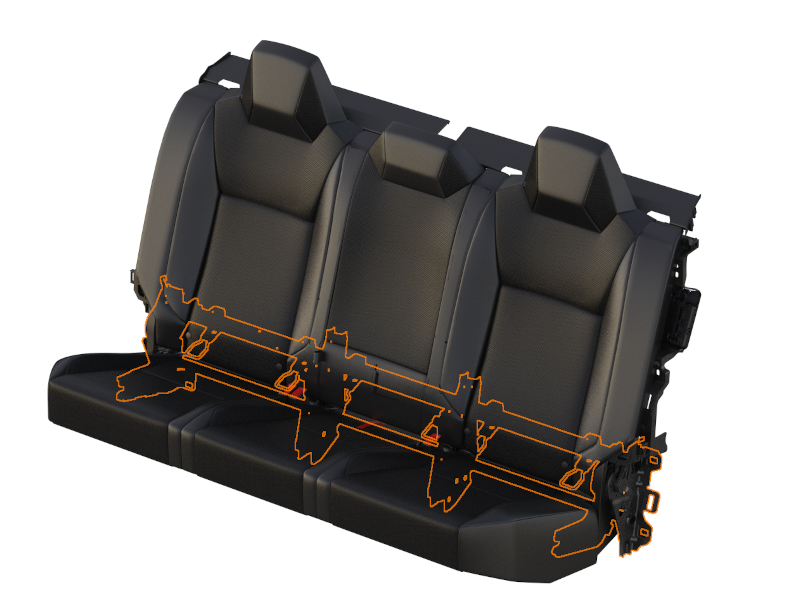 The second row gets its structure from the seatback substrates that are mounted to the rear wall, the main frame, and the cushion frame.