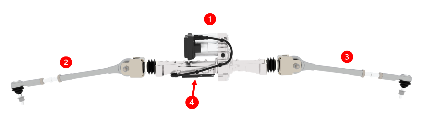 | 1. Rear Steering Actuator (RSA) 2. Tie Rod 3. Tie Rod 4. Linear Position Sensor (LPS) |